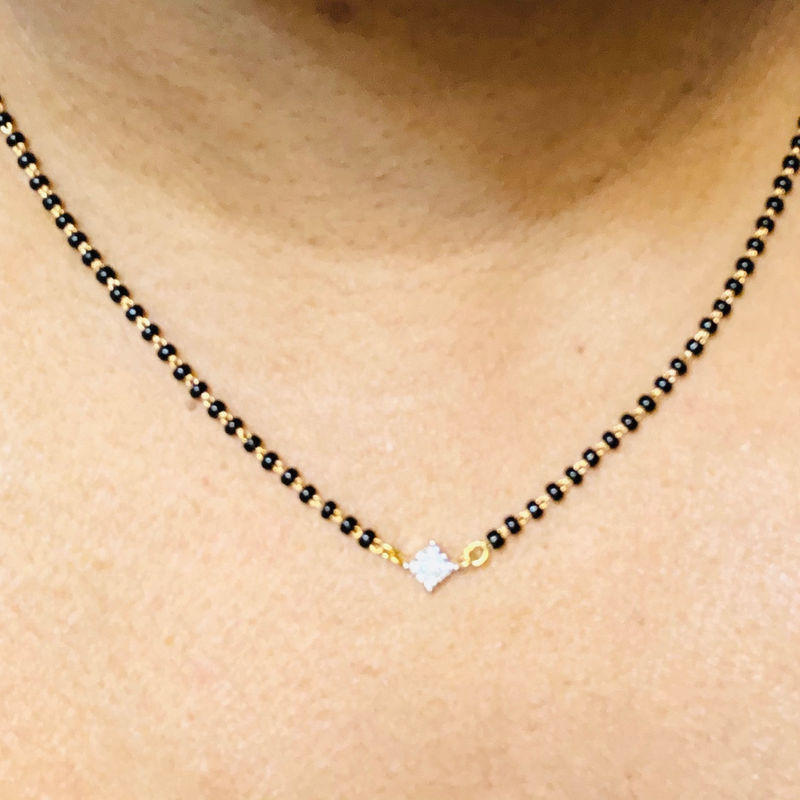 Square Solitaire Charm Black Beaded 18ct Gold Plated Mangalsutra ...