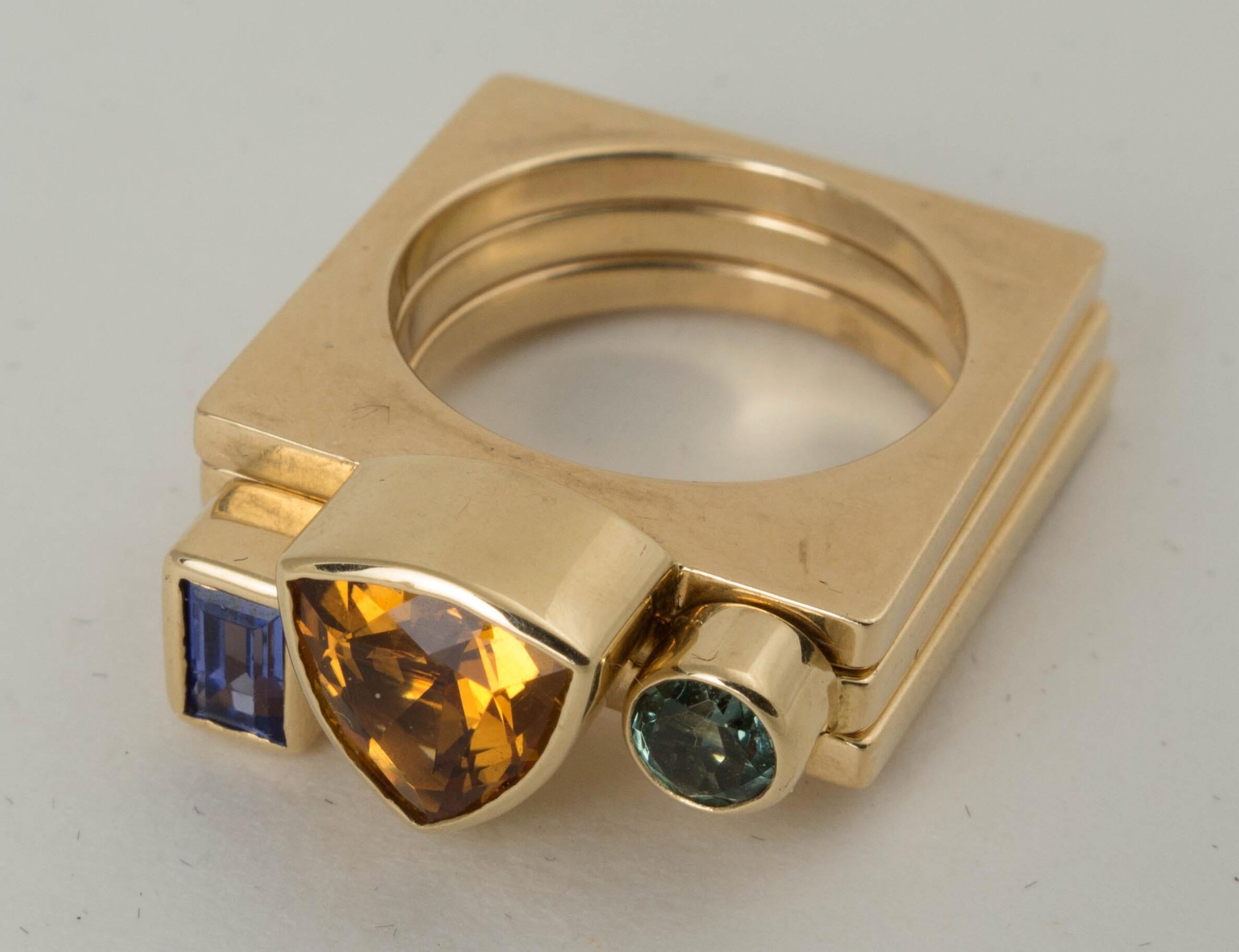 Vintage 1970's 9ct Gold Brutalist Square Stack Ring