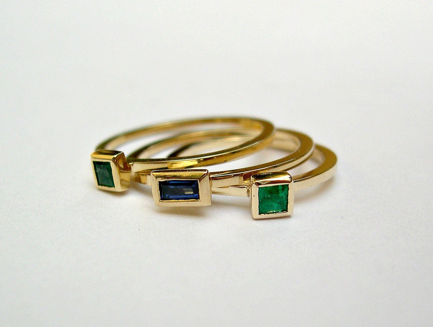Solid Gold Rings Square Stacking Rings Gemstone Gold Ring - Etsy
