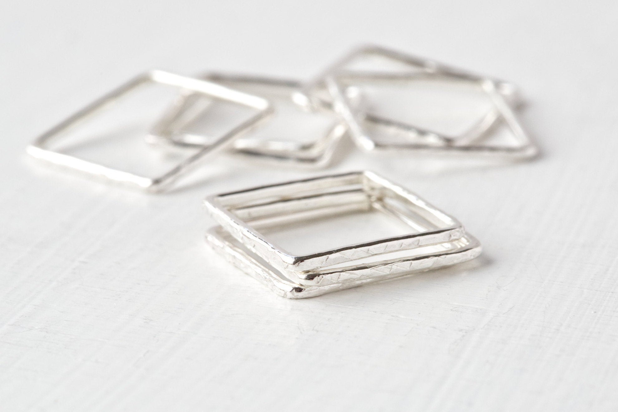 Handmade Square Hammered Stack Ring - Etsy