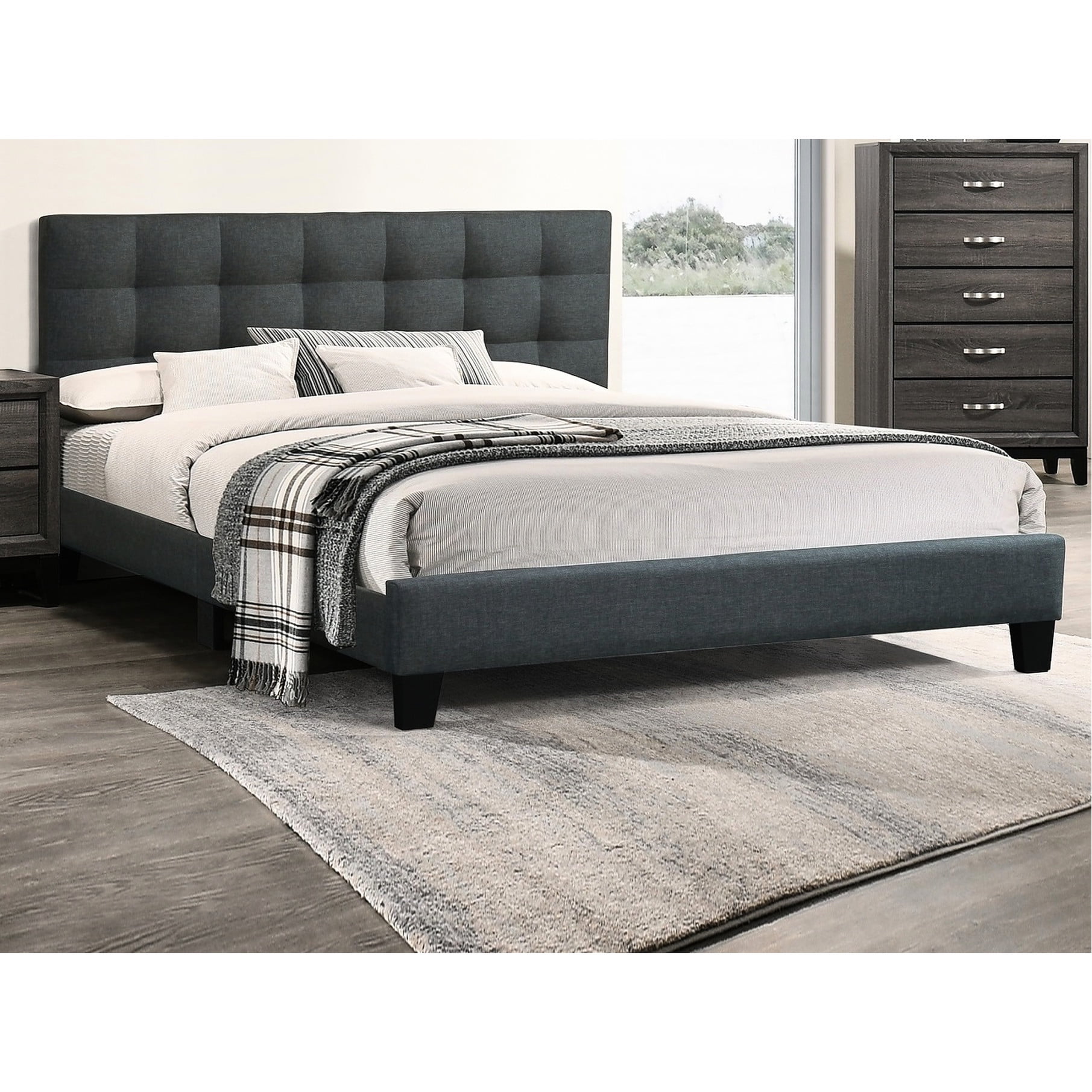 Charcoal Polyfiber Queen Bedframe | Bedroom Use, Square Tufting Design ...