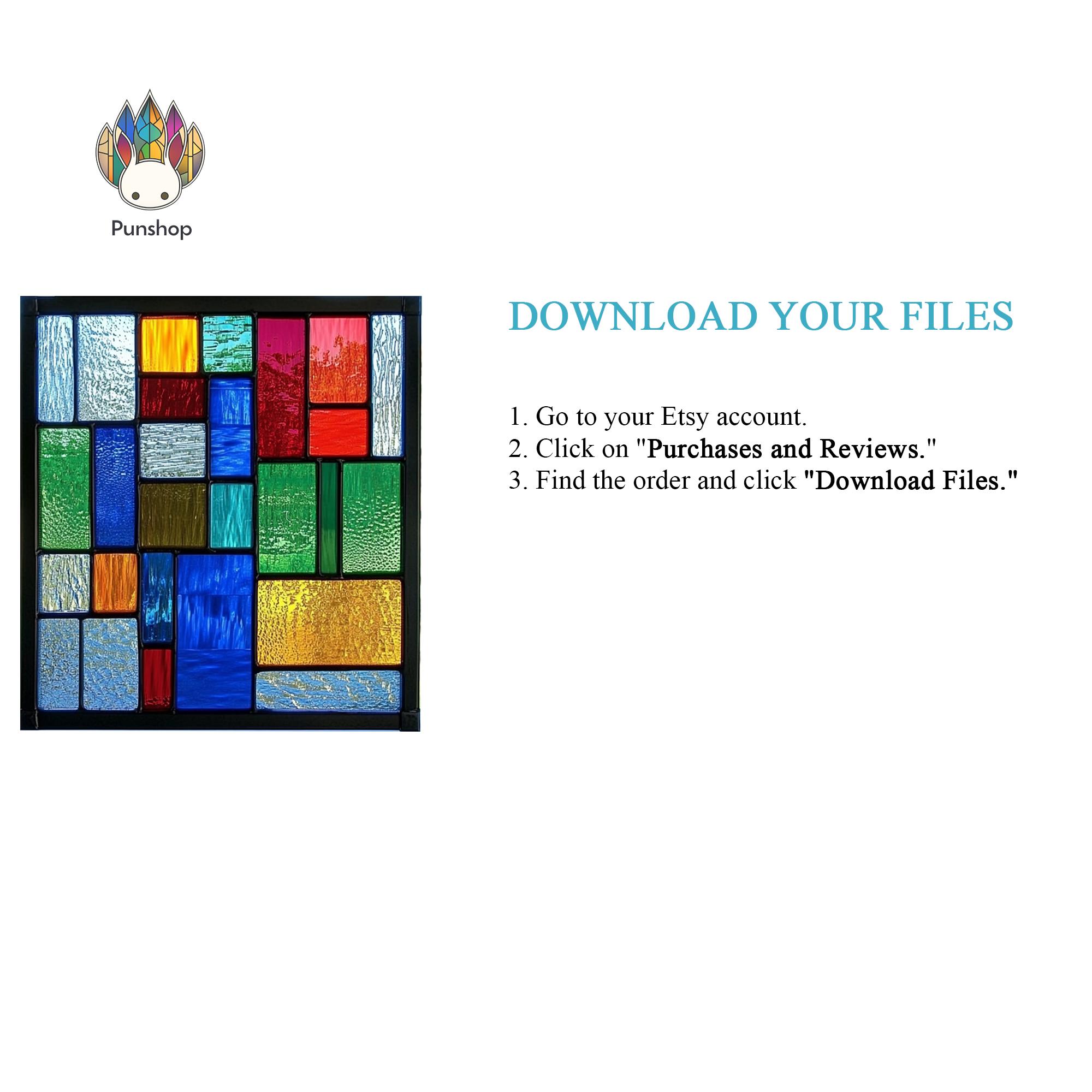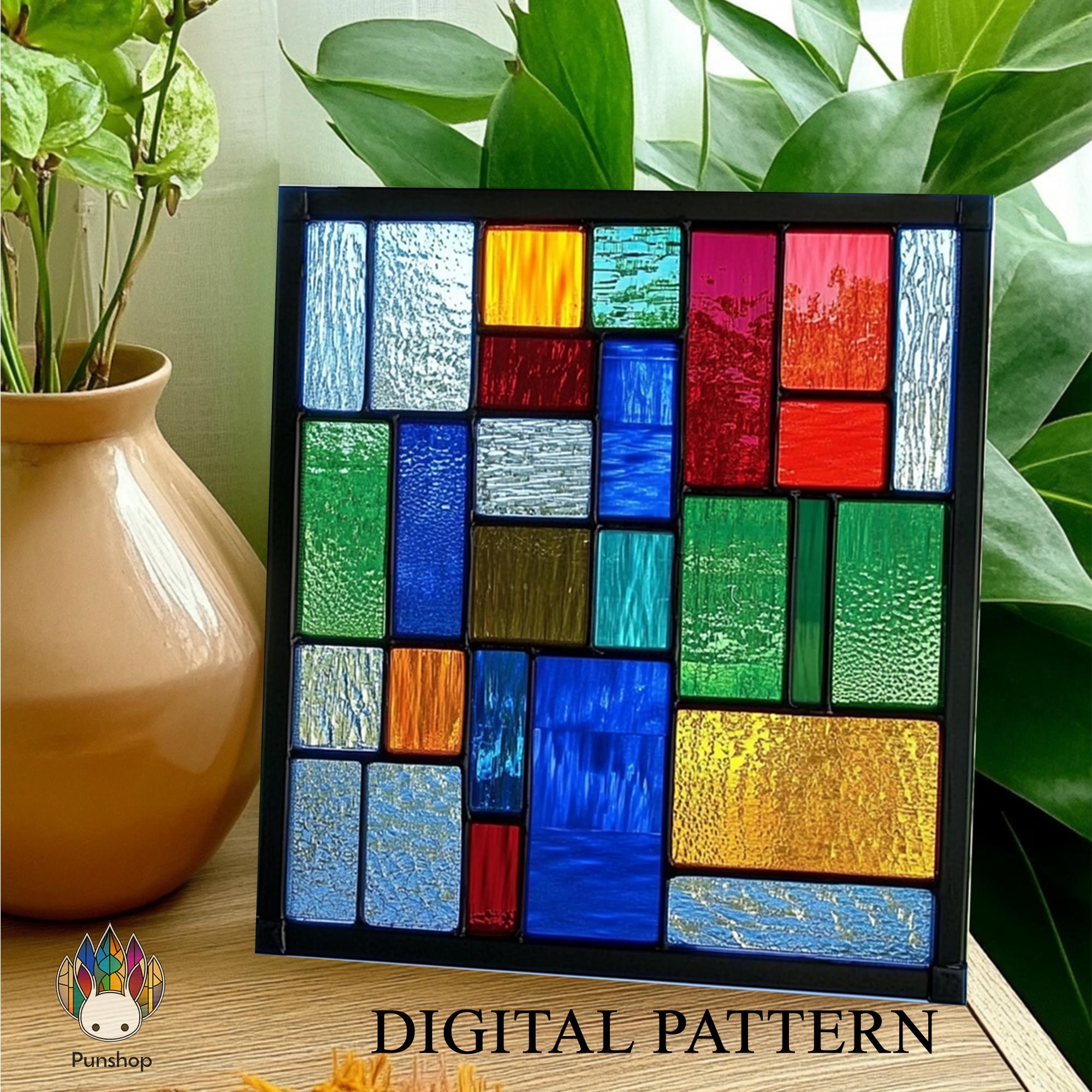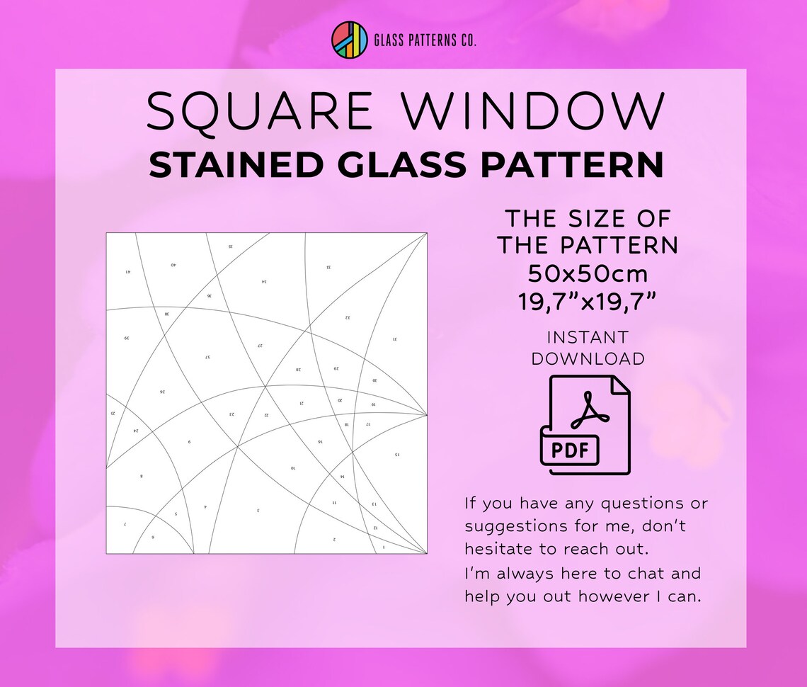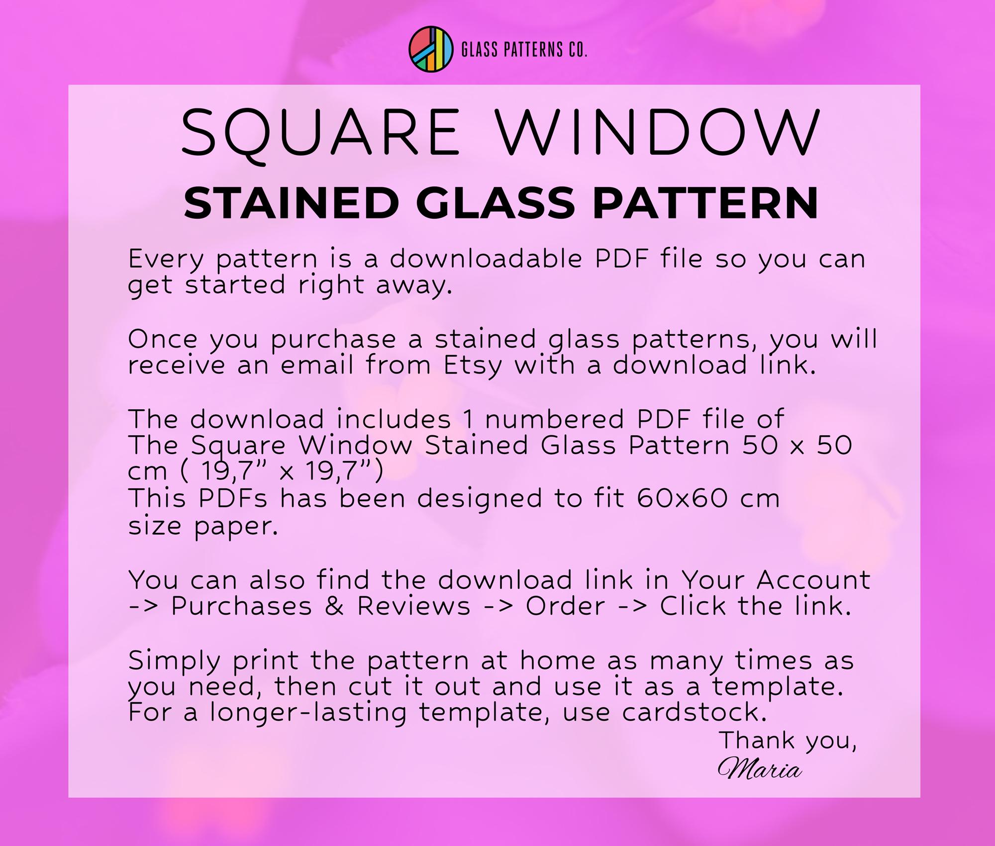 Digital Download Pattern Square Stained Glass Window Panel Multi Colors ...