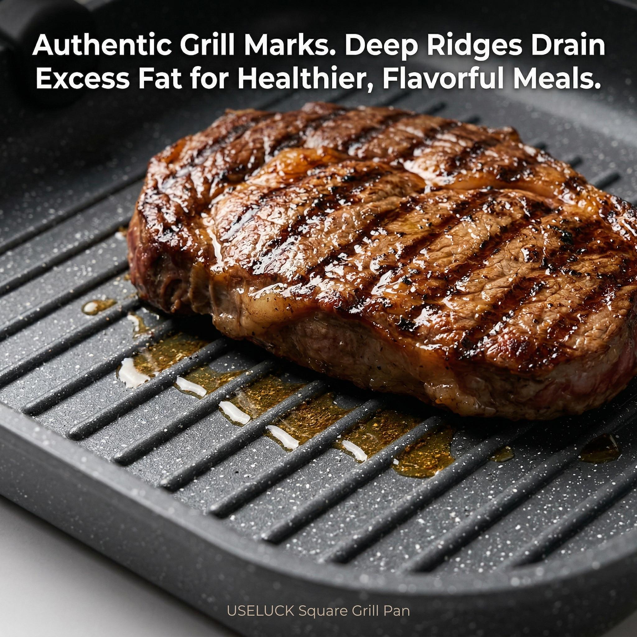 USELUCK 10-inch Non-Stick Square Grill Pan - Heavy Duty Cast Aluminum ...