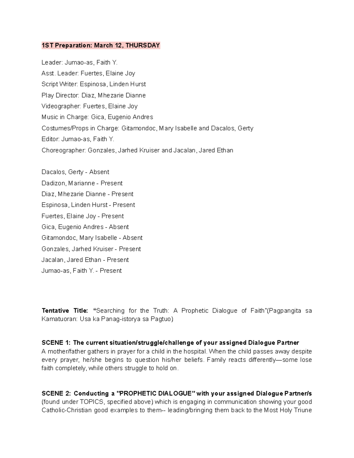 1ST Preparation: A Prophetic Dialogue for Truth - Group 2 EDM - Studocu
