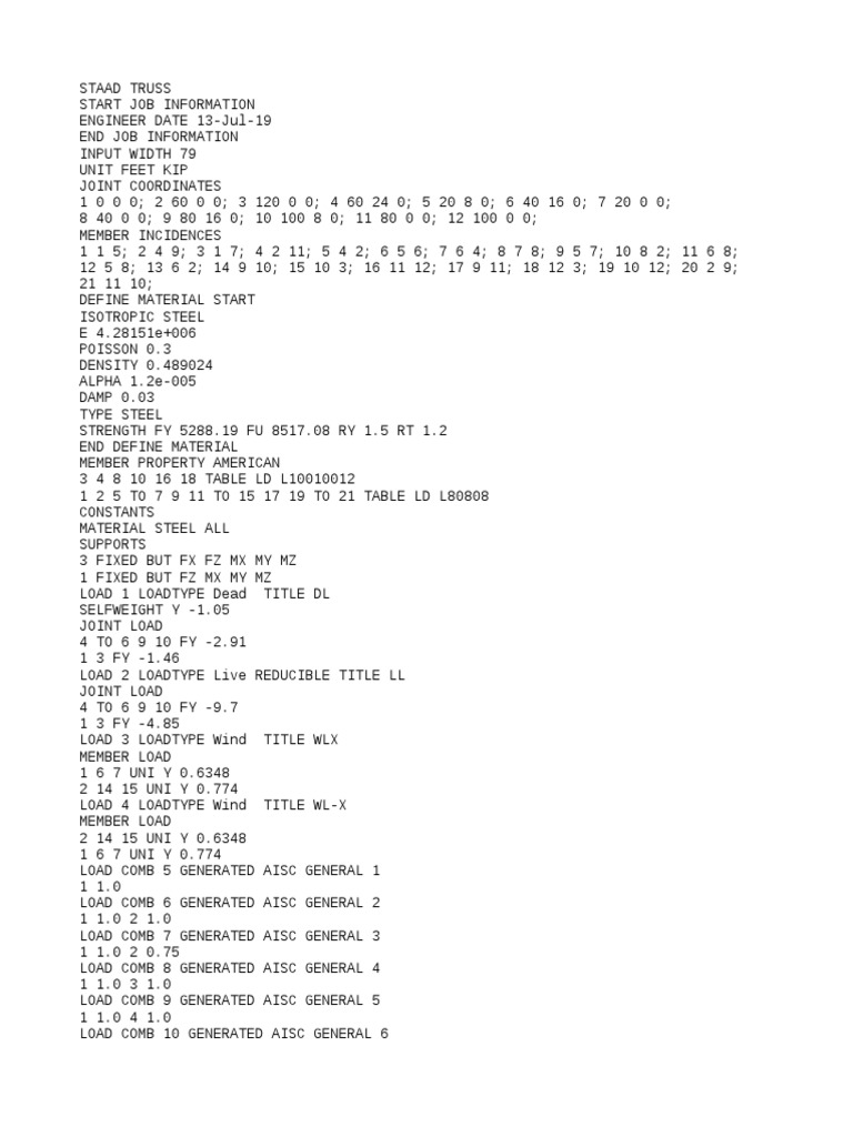 STAAD Input For Design of Industrial Truss | PDF | Technology & Engineering
