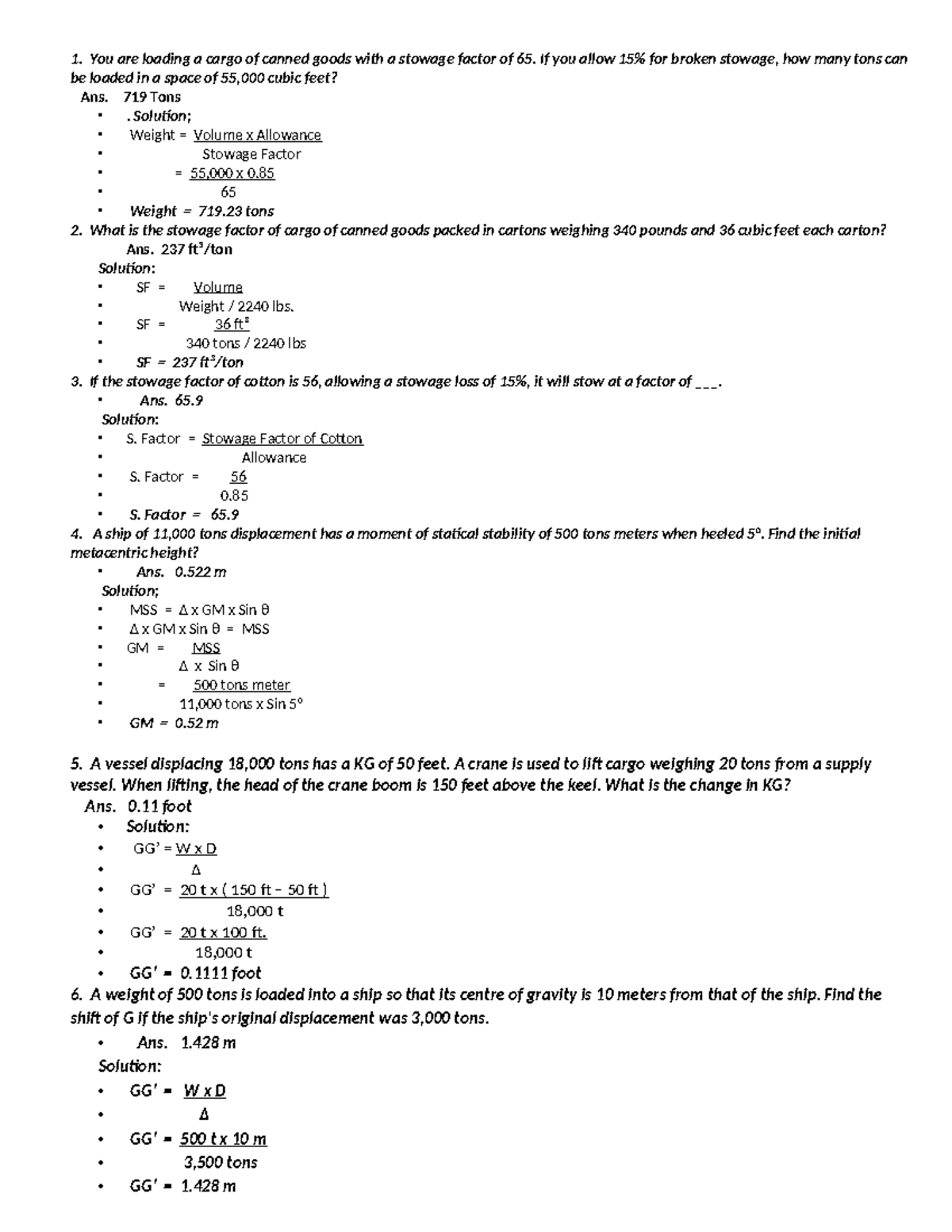 4 - Solved problems of chapter 4 of ship stability - Stability – I ...