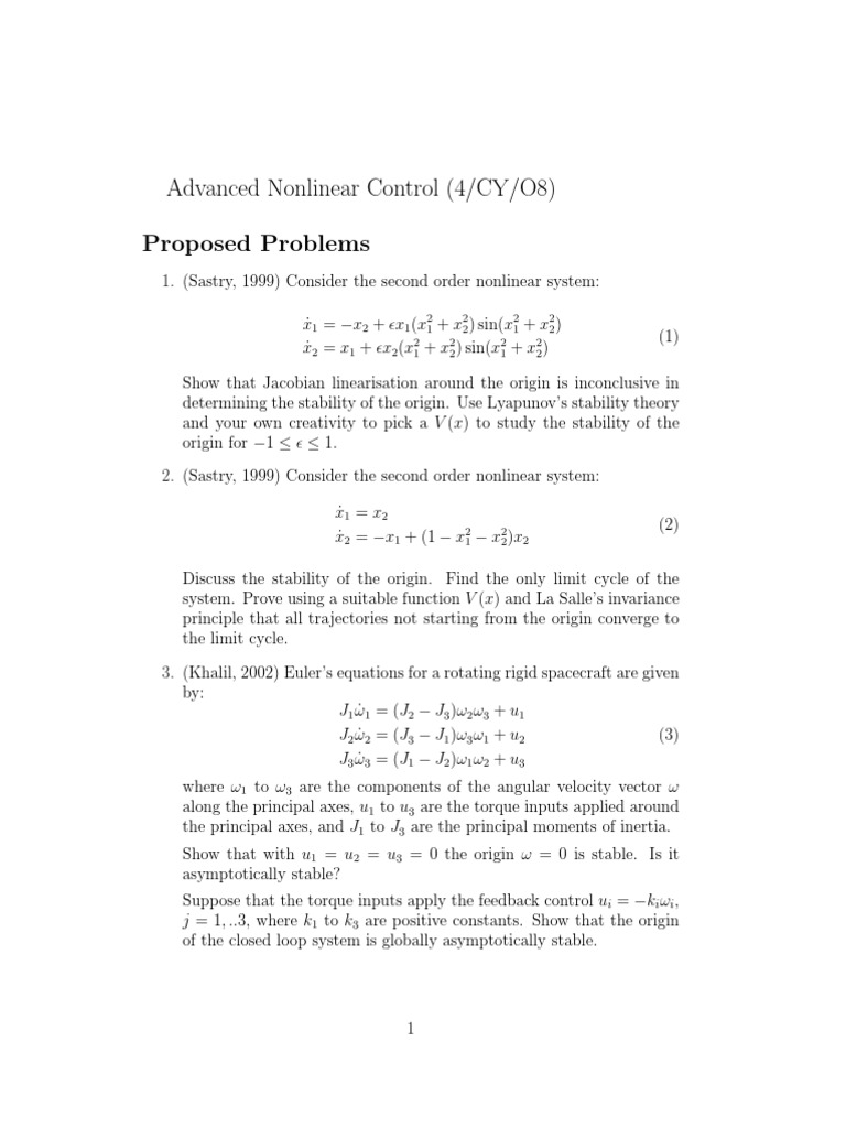 Solved Assignment 1 Fundamentals of Stability Theory Problem | Chegg.com