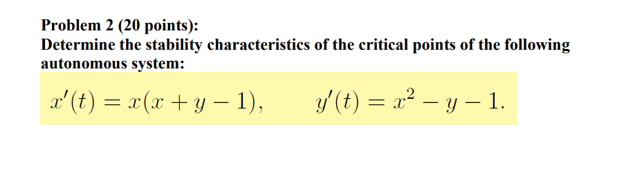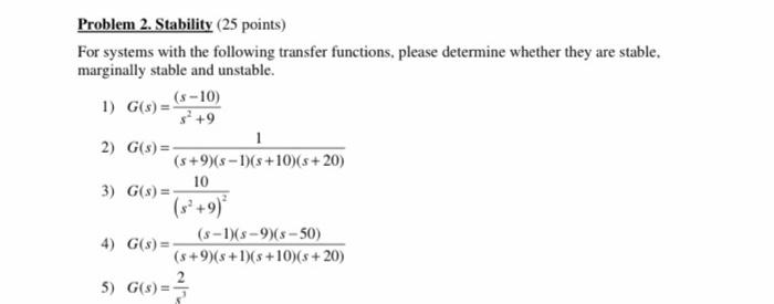 Solved Problem 2 (20 points): Determine the stability | Chegg.com