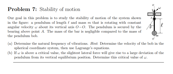 Solved Problem 7: Stability of motion Our goal in this | Chegg.com