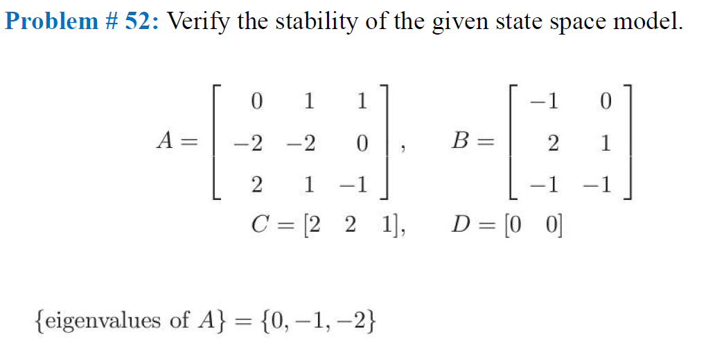 Solved Problem # 52: Verify the stability of the given | Chegg.com