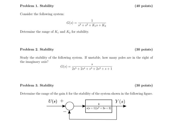 Solved Problem 1. Stability (40 points) Consider the | Chegg.com