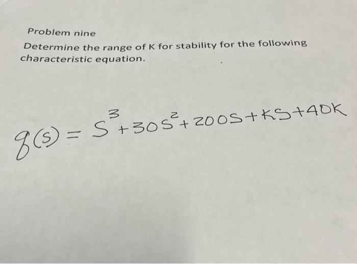 Solved Problem nine Determine the range of K for stability | Chegg.com