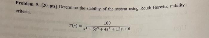 Solved Problem 5. [20 pts] Determine the stability of the | Chegg.com