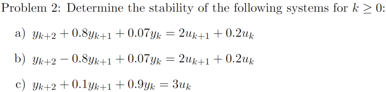 Solved Problem 2: Determine the stability of the following | Chegg.com