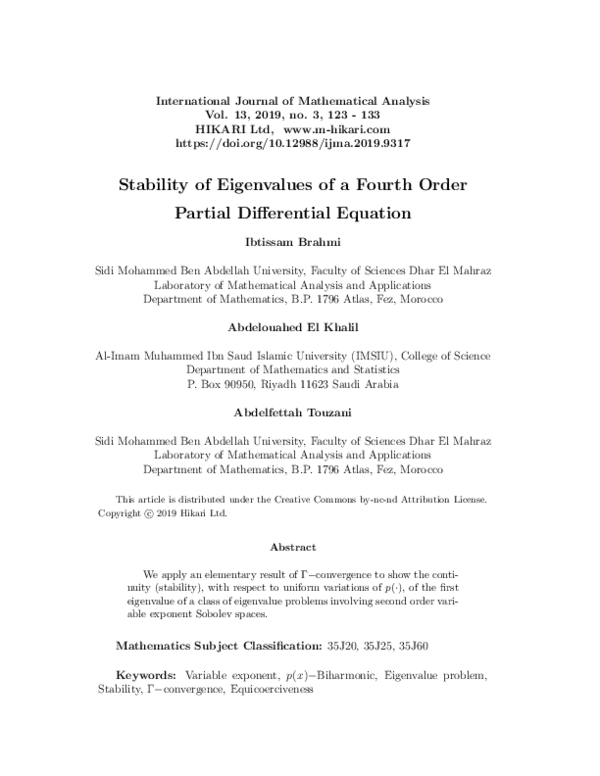 (PDF) Stability of eigenvalues of a fourth order partial differential ...