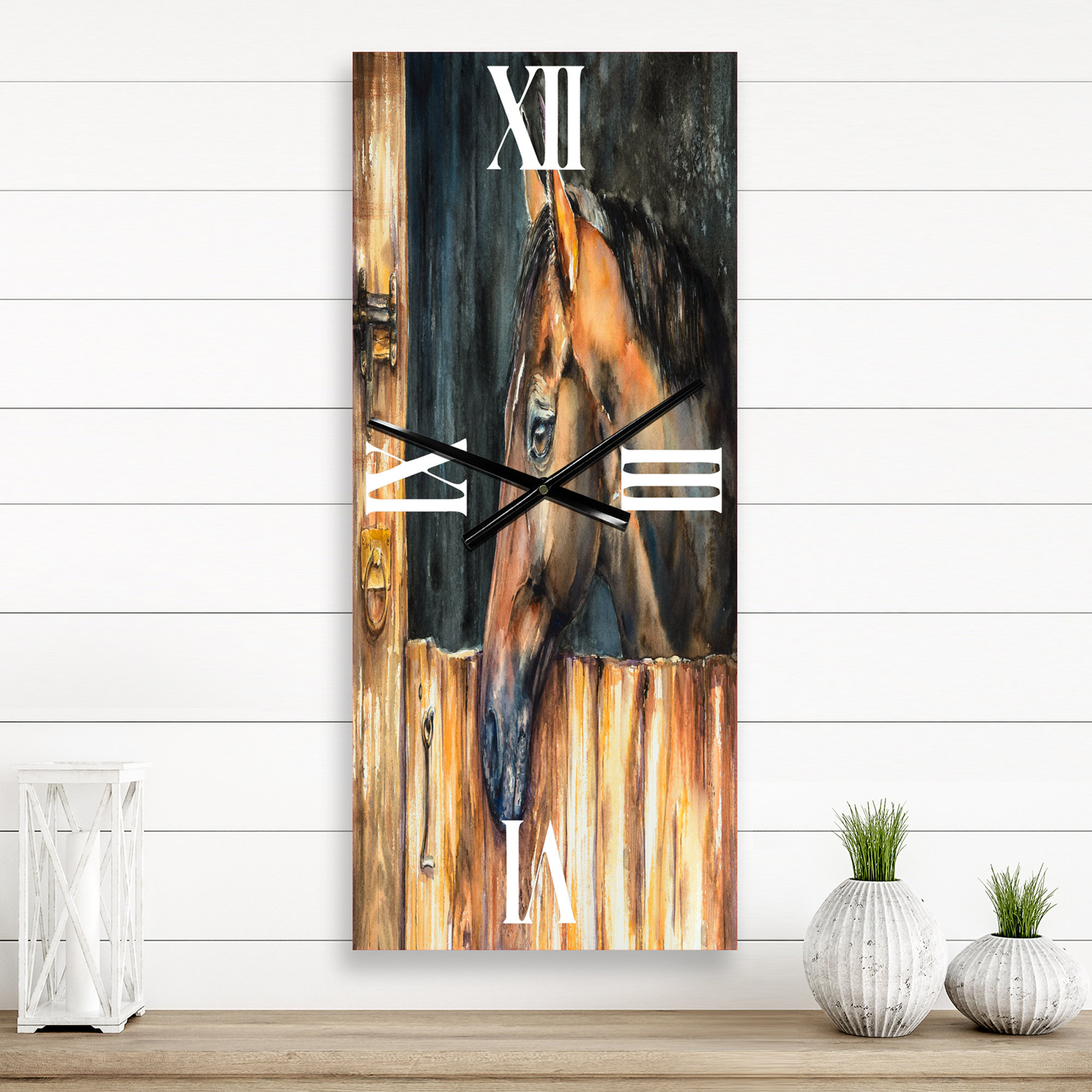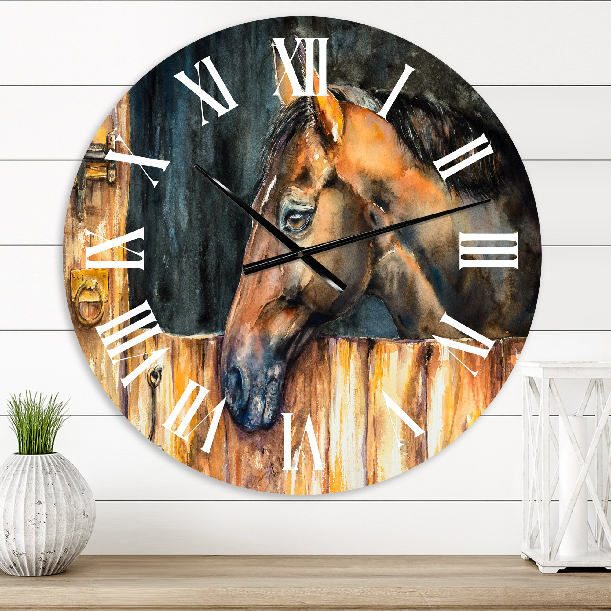East Urban Home The Head of a Horse in Stable - Farmhouse Wall Clock ...