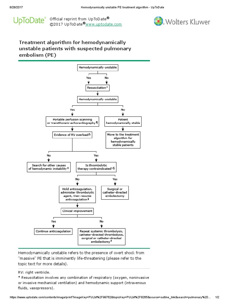 Hemodynamically Unstable PE Treatment Algorithm - UpToDate | Medical ...