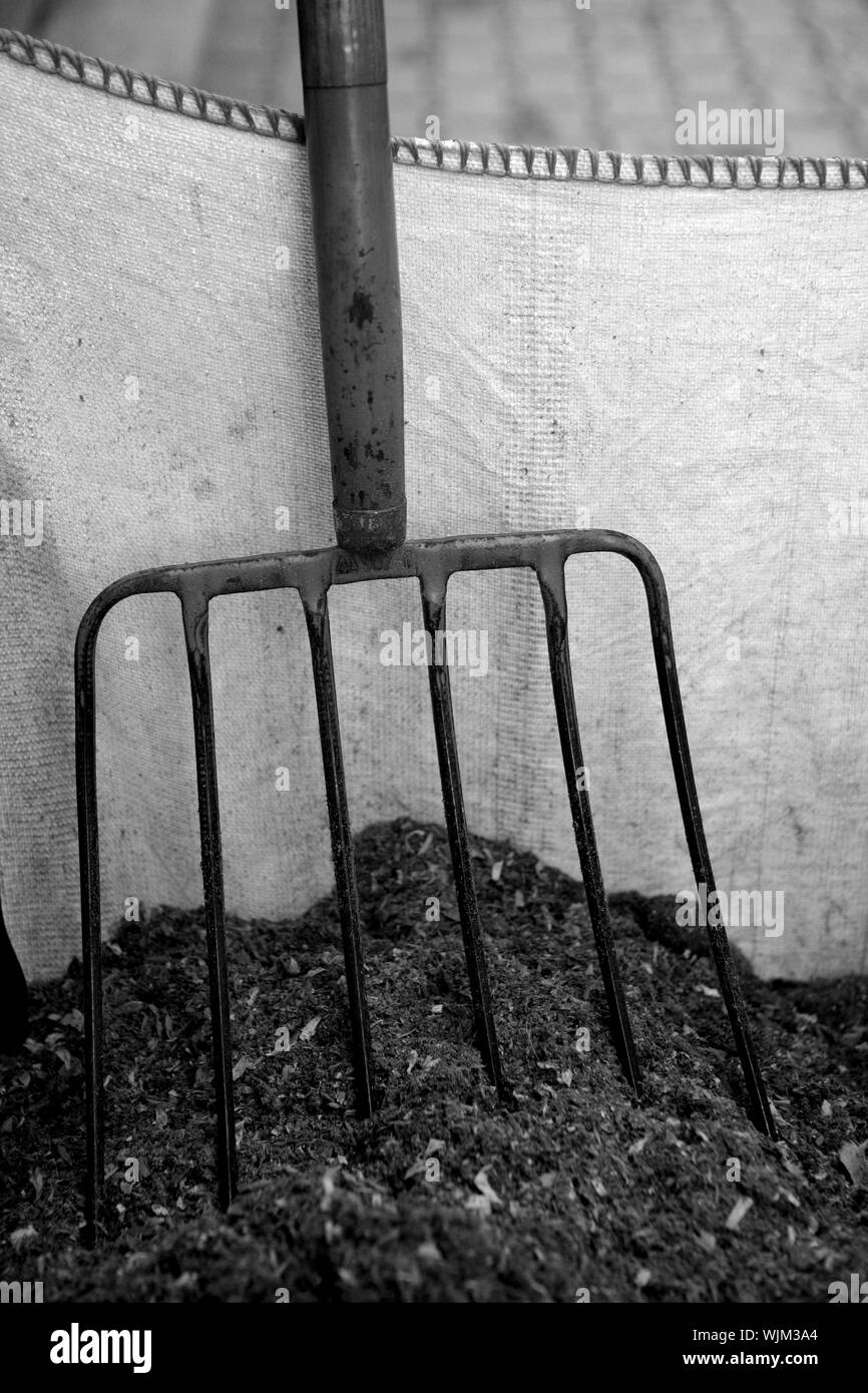 Horse stable witth straw fork tool, sawdust Stock Photo - Alamy
