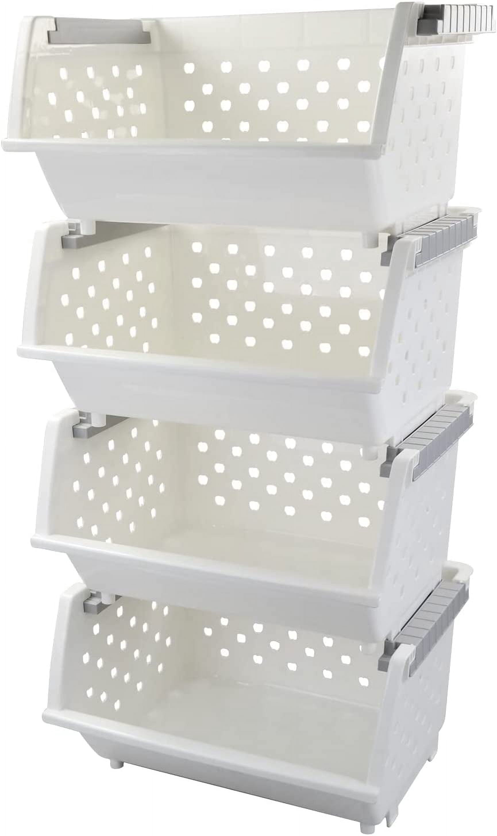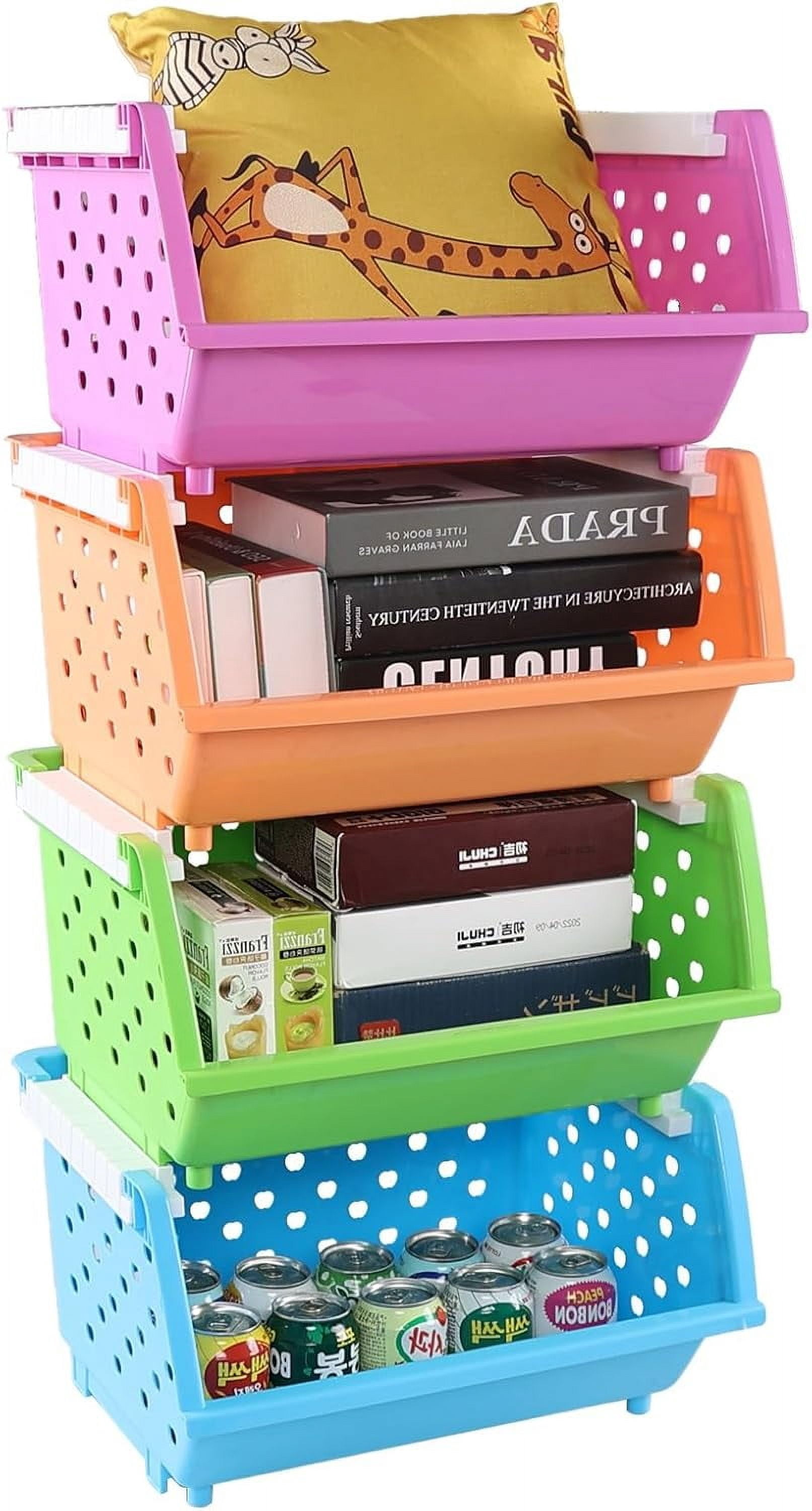4-Pack Plastic Stackable Storage Basket Organizer, Multi-functional ...