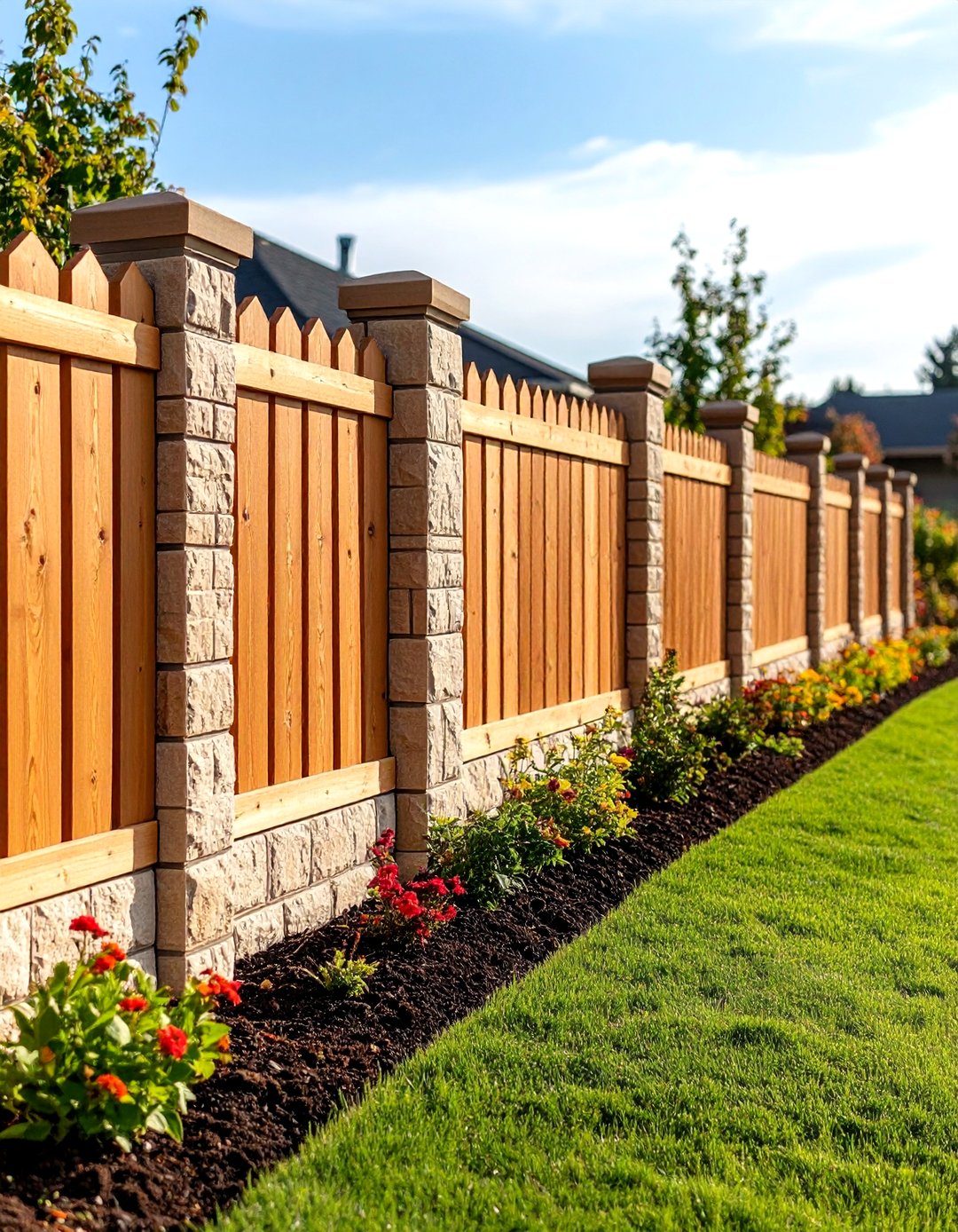 Polished Block Stack Bond Fence Design