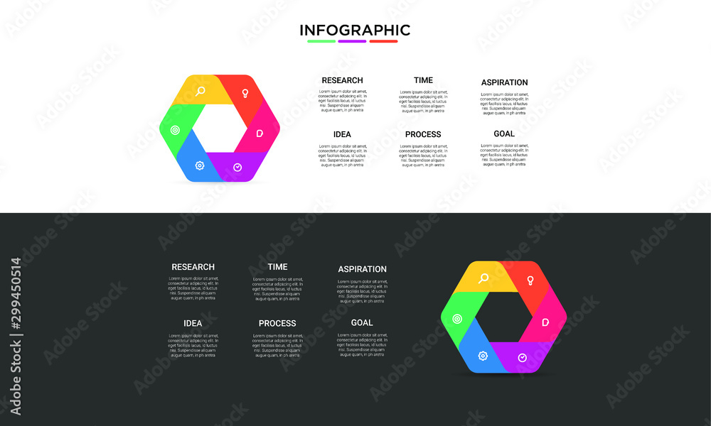 set hexagon color Infographic stack chart design with icons and options ...