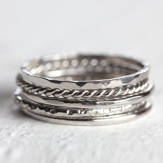 Textured Stack Rings Sterling Stack Rings Custom Stack - Etsy