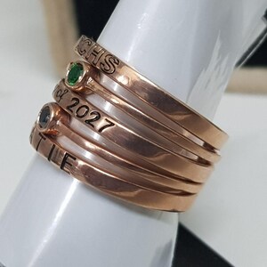Women's Handmade Stackable Class Ring Set, Customized Engraved Stack ...