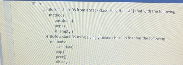 Solved a) Build a stack DS from a stack class using the | Chegg.com