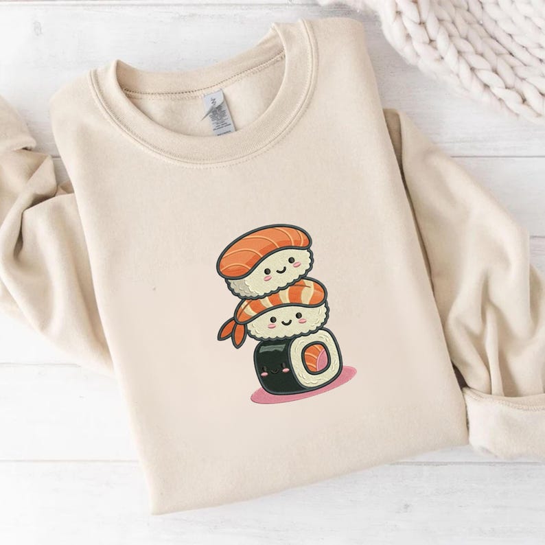 Kawaii Sushi Stack Embroidery File Cute Japanese Food Stitch Design ...