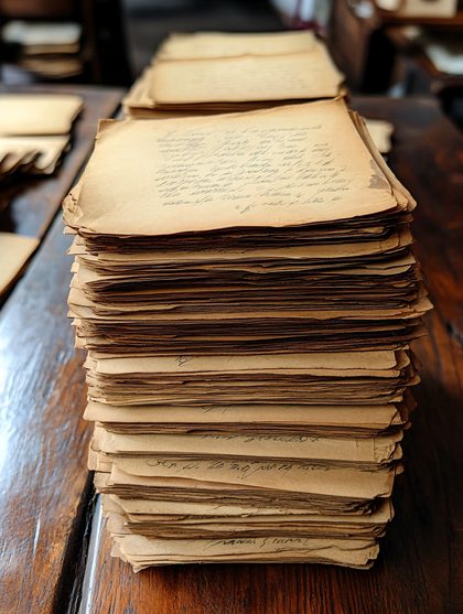 Stack of Old Handwritten Papers on Wooden Surface | Premium AI ...