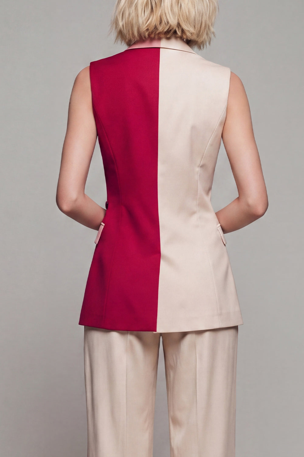 ZAPAKA Women Notched Lapel Suits ColorBlock Light Khaki 2 Piece ...