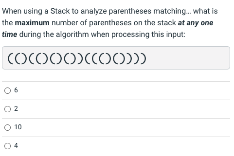 Solved When using a stack to check matching parentheses, | Chegg.com