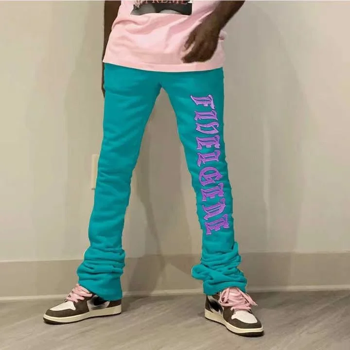 Men Stacked Pants Streetwear Oem Custom Plain Stacked Sweat Pants High ...