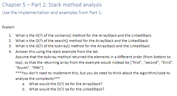 Solved Chapter 5 - Part 2: Stack method analysis Use the | Chegg.com