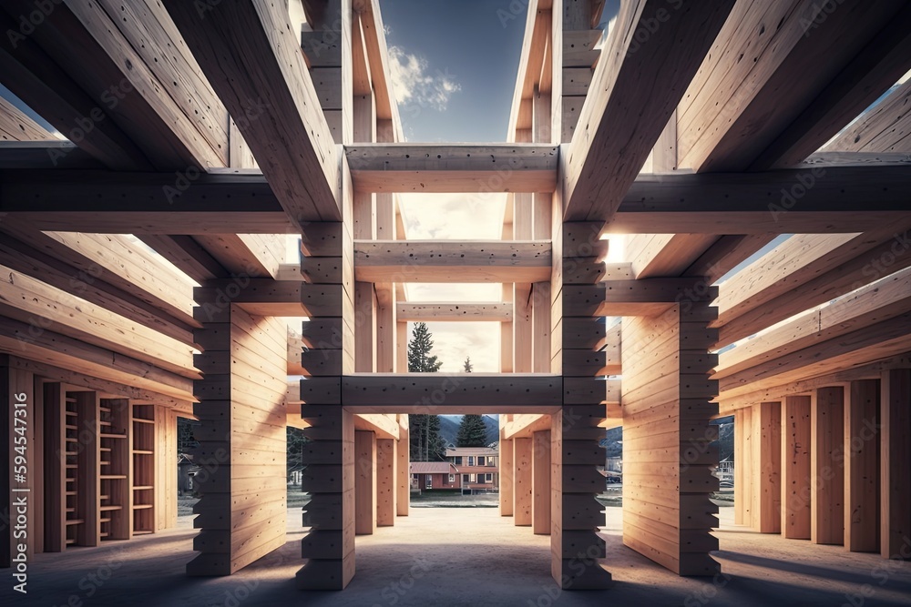 stacked wood beams form the foundation of eco-friendly building ...