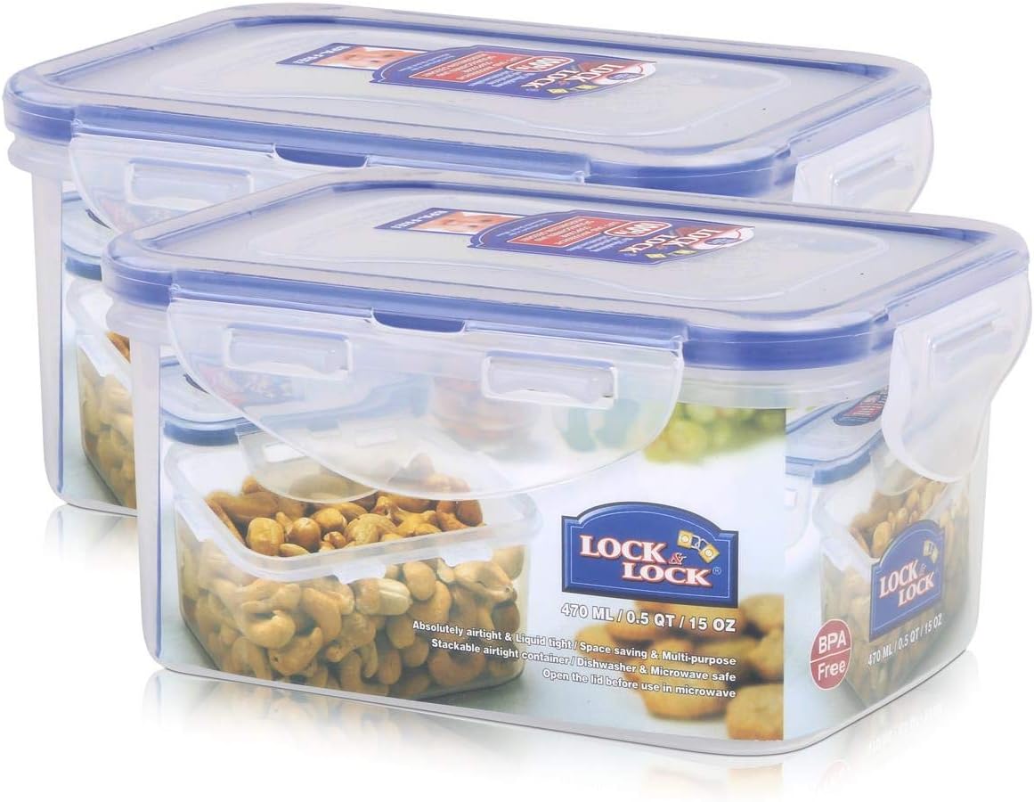 2 X Lock & Lock Stackable Airtight Container Rectangular 470ml - HPL807 ...