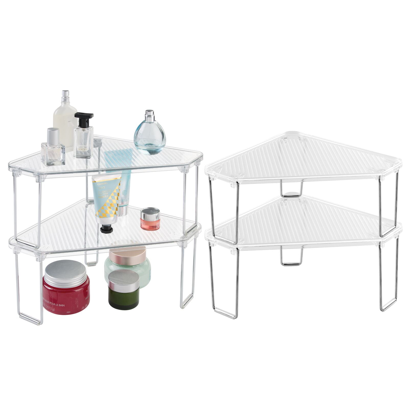 mDesign Plastic/Steel Corner Stackable Rack, Bathroom, 4 Pack, Clear ...
