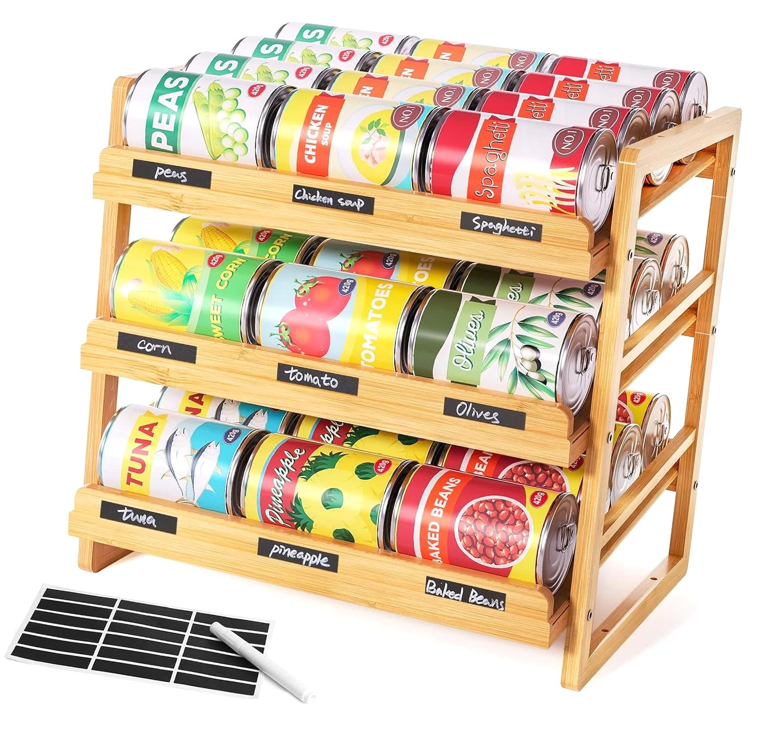 Amazon.com: Yumkfoi Bamboo Can Rack Organizer, 3 Tier Stackable Can ...