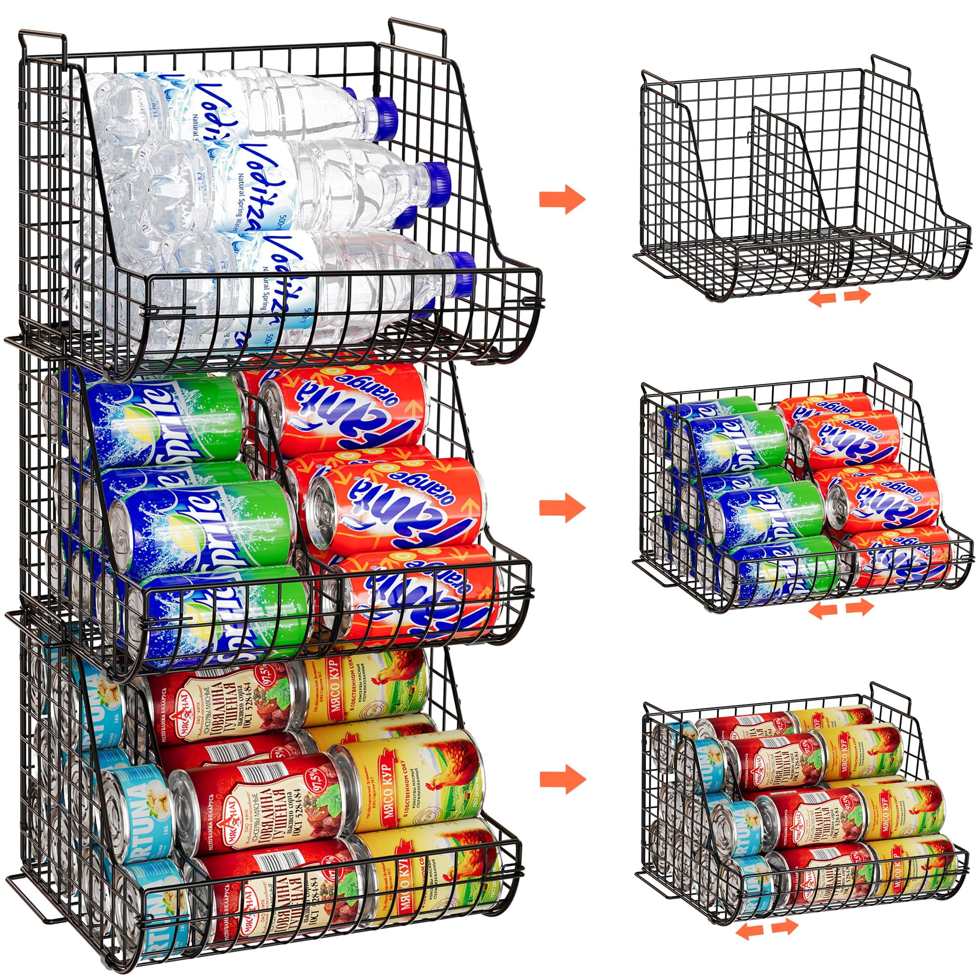 3-Tier Stackable Can Rack Organizer for Pantry, Adjustable Can Storage ...
