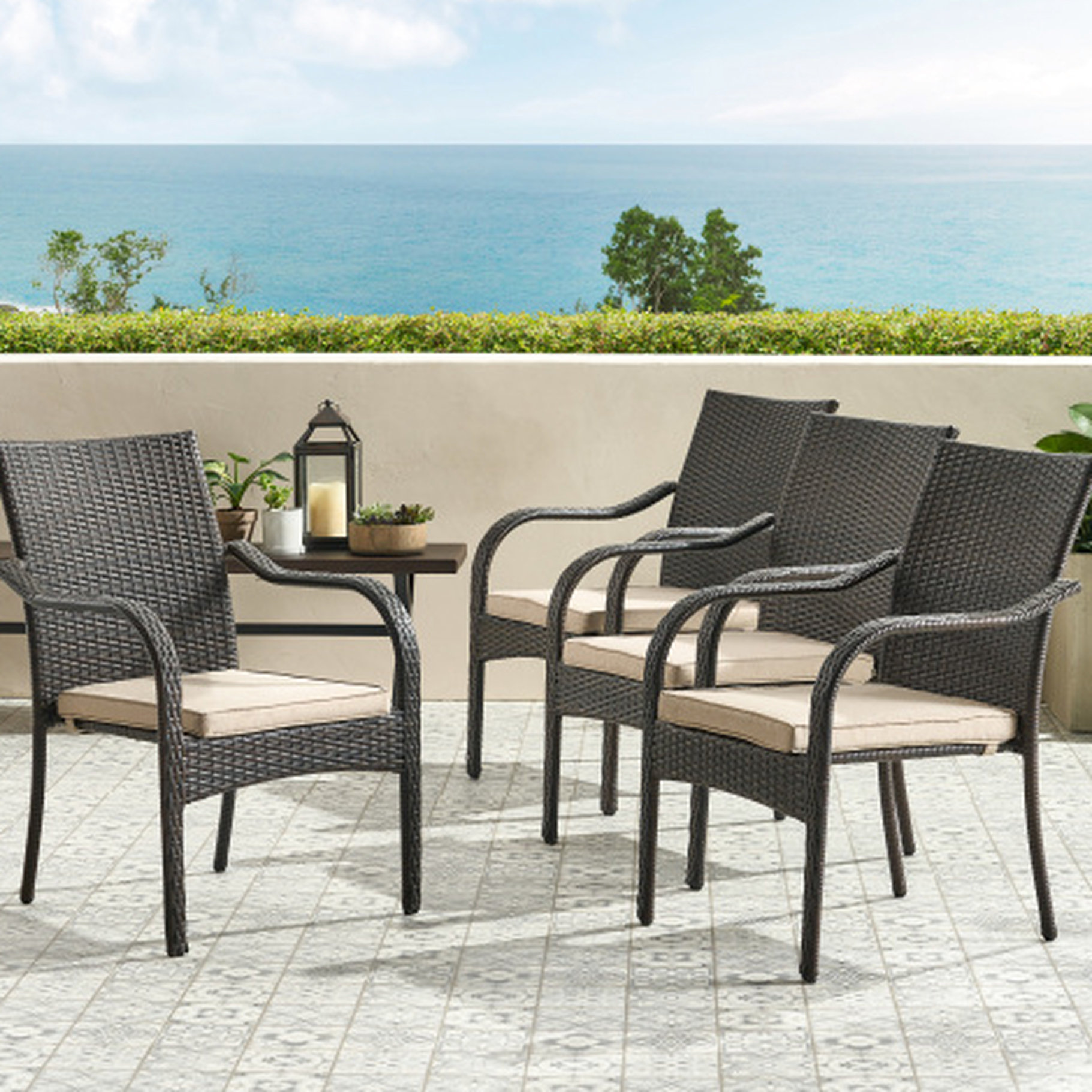 Stackable Outdoor Chairs With Cushions For Patio Dining. 2. & . Cream ...