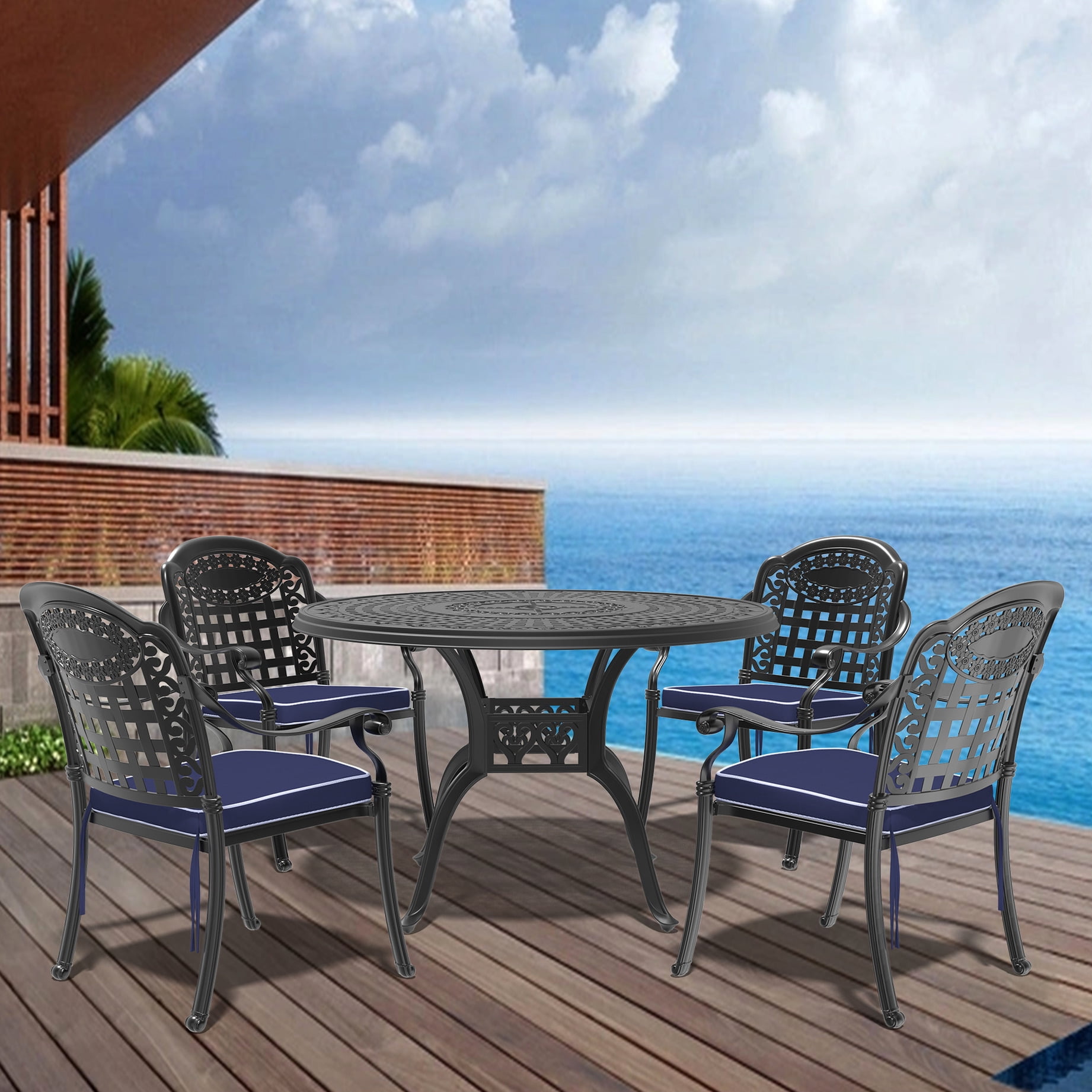 Hokku Designs Black Cast Aluminum Outdoor Furniture With Stackable ...