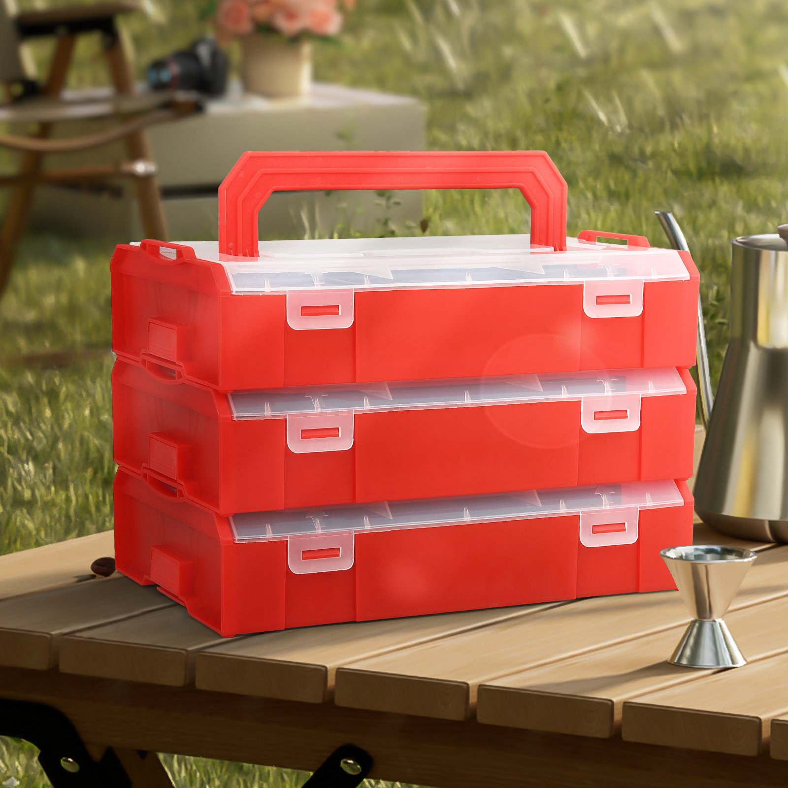 3-Tier Craft Storage Box, Adjustable Storage Box with 18 Compartments ...