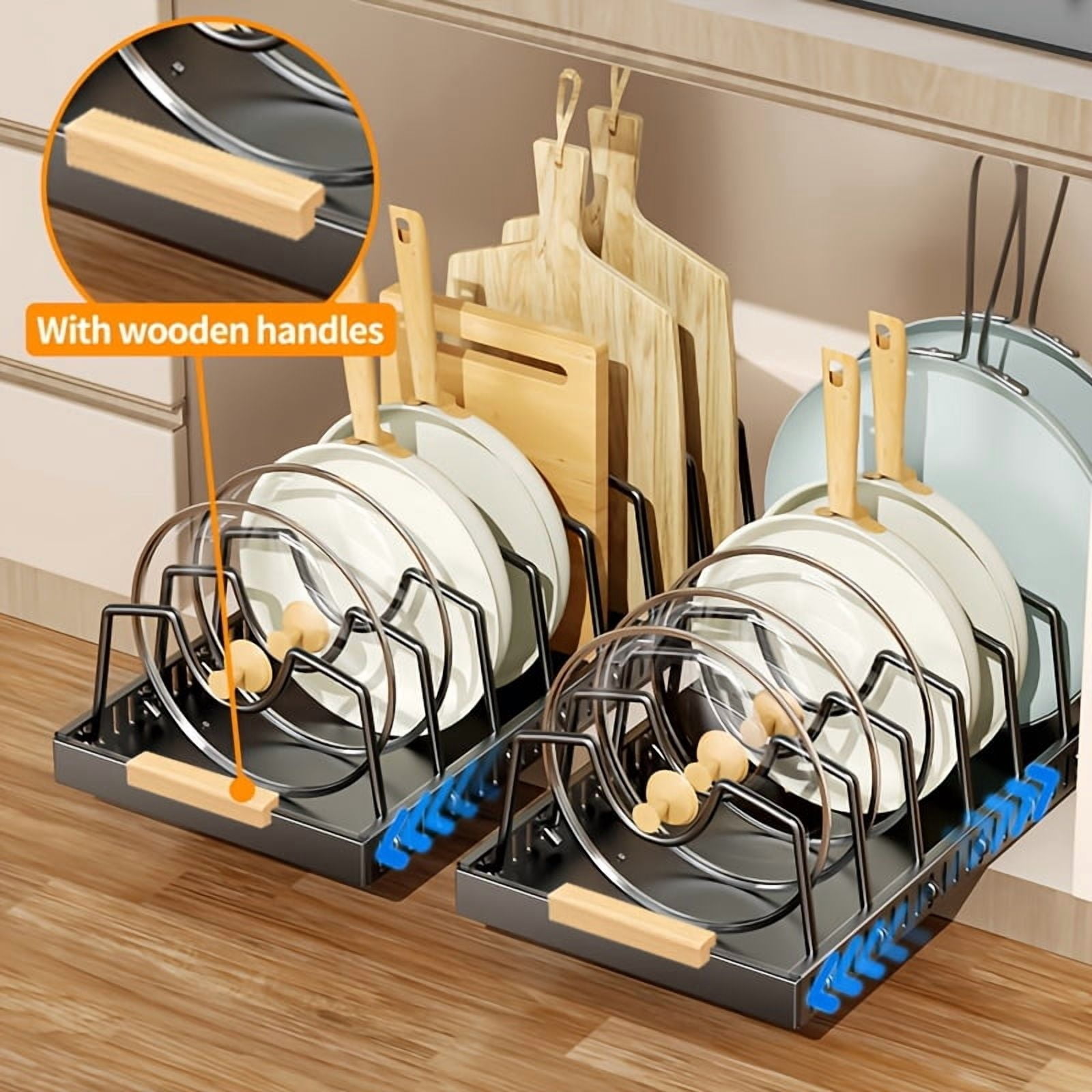 Pull-Out Pot Pan Storage Box, Sliding Lid Rack with Adjustable Dividers ...
