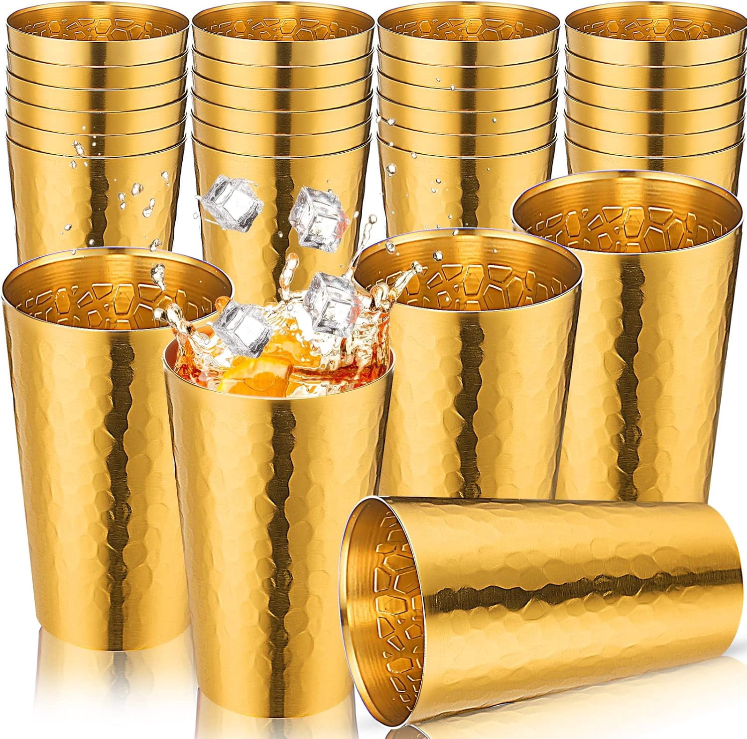 24 Pcs Aluminum Cold Drink Cups 15oz Stackable Metal Cups Retro ...