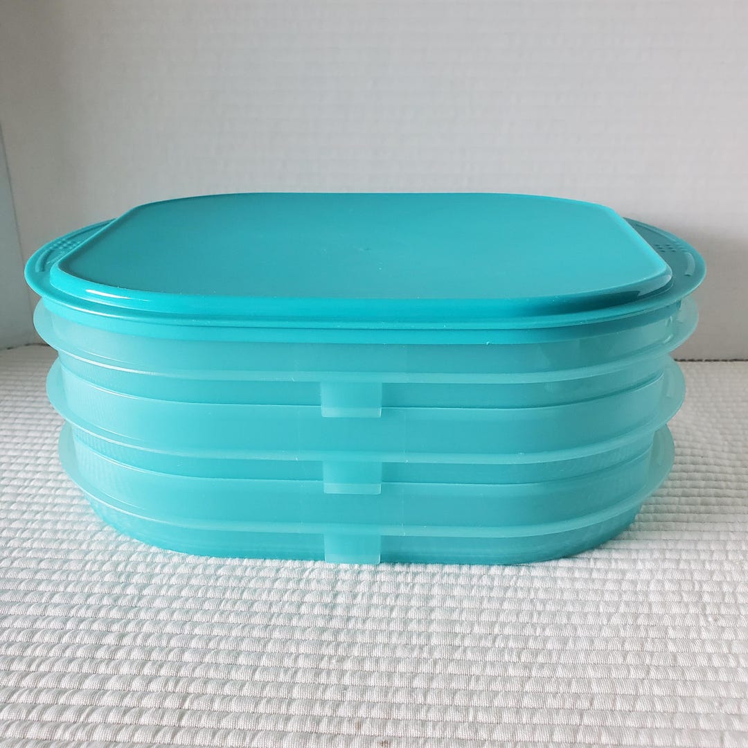 Tupperware Fridge Stackables Deli Keeper 3 Containers Aqua Teal Meat ...