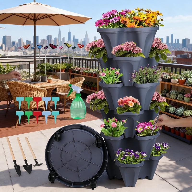 6-Level Rolling Planter Tower, Stackable Vertical Gardening System ...