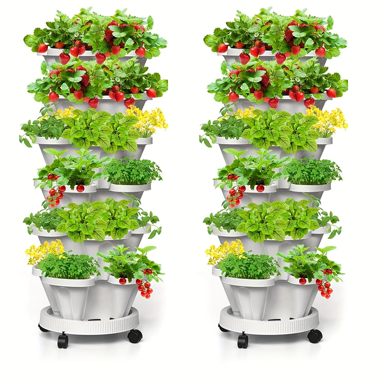 5 Tier Stackable Indoor/Outdoor Vertical Garden Planter with Wheels for ...