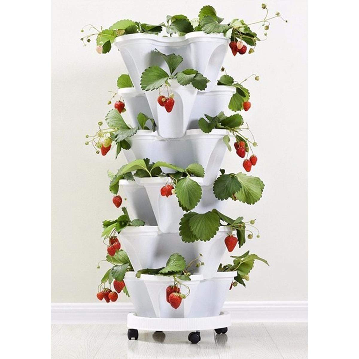 Amazon.com : RooTrimmer 5 Tier Tower Stackable Planter, Strawberry ...
