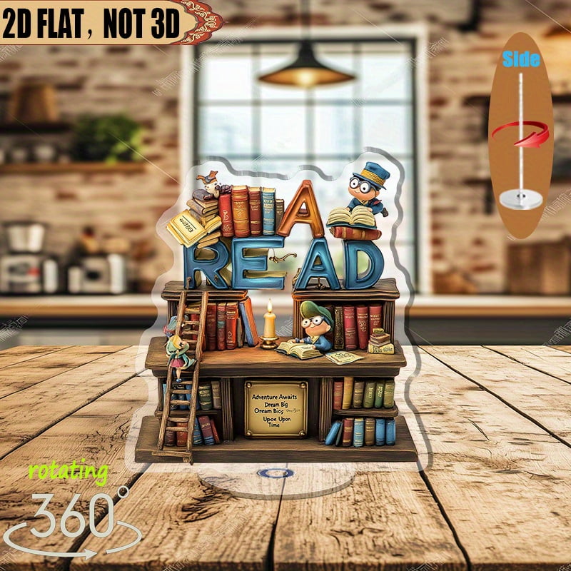 1pc 2d flat Rotating acrylic display piece featuring joyful bookworms ...