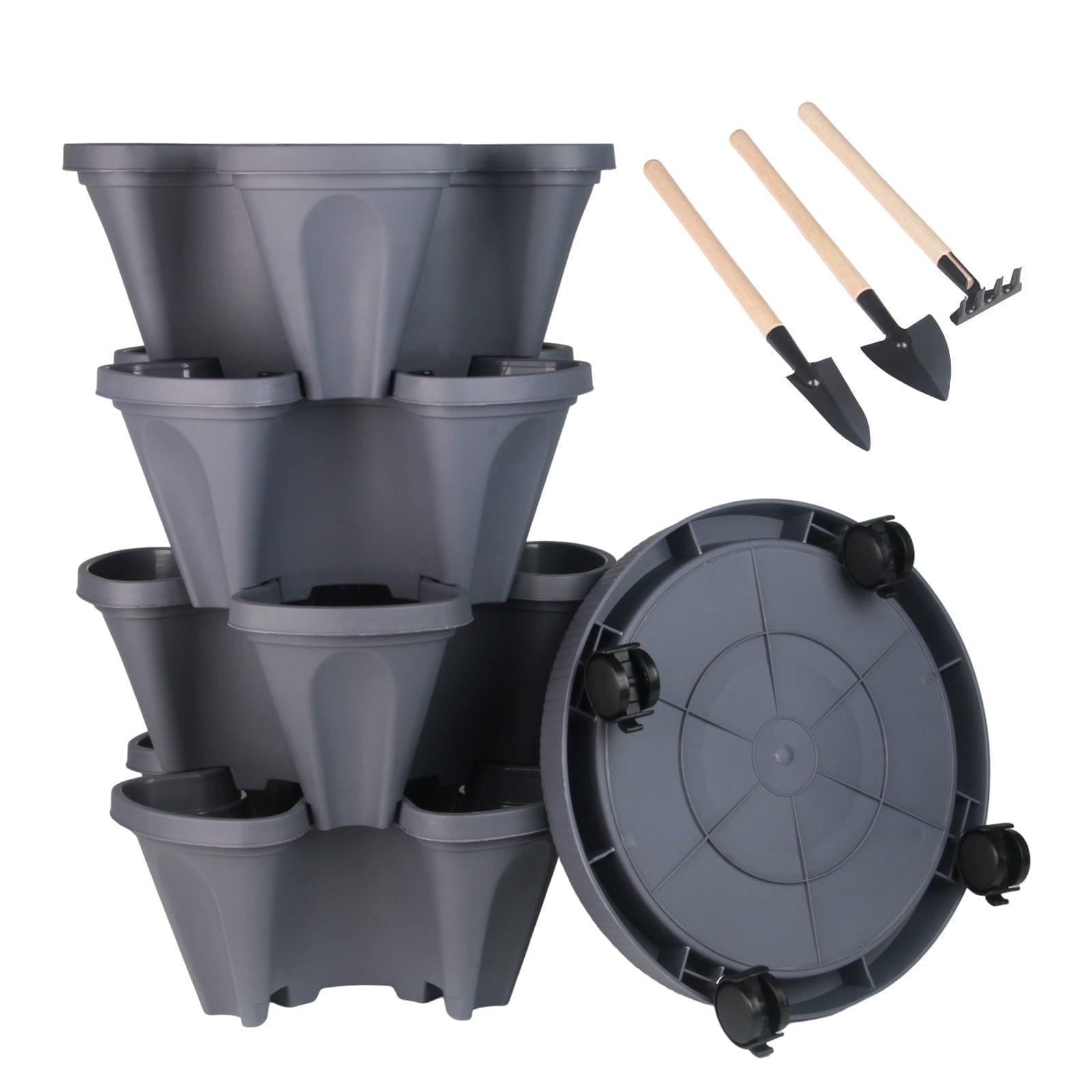 Stackable Planter with Wheels and Tools, Indoor Outdoor Gardening Pots ...